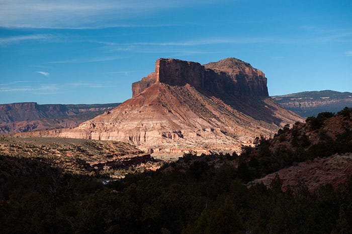 I spent the rest of the day driving around and photographing this thing. Here’s a view of it from the west, with the Dolores River in the foreground: